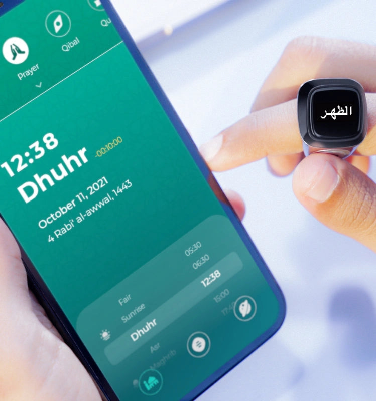 Dotée d’un écran OLED de 0,42", la bague affiche l’heure, le nombre de Tasbih effectués et les horaires de prière pour une expérience visuelle agréable et pratique.