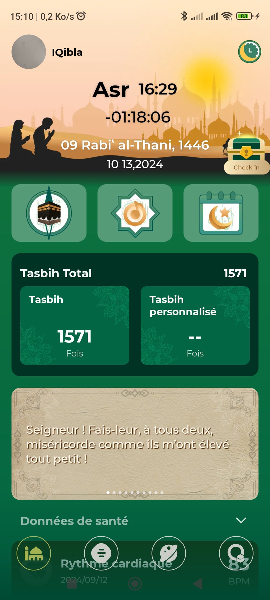 Grâce à la technologie Bluetooth 5.1, la Zikr M02 se synchronise parfaitement avec l’application iQibla Life, vous permettant de suivre vos pratiques et d’accéder facilement à des rappels personnalisés.